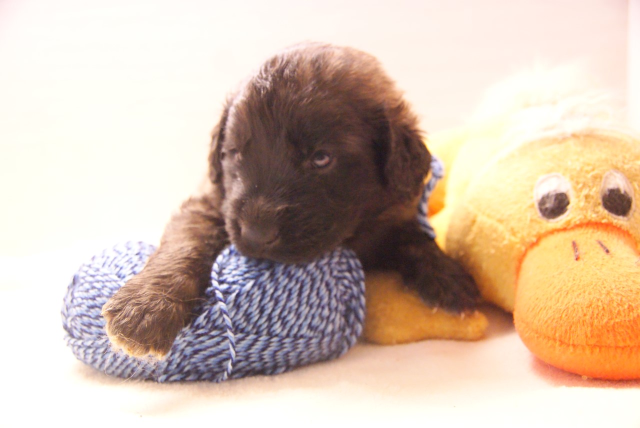 Heel vermoeiend is dat. Dus dan pauze en drinken bij de mama. Binnen enkele dagen mogen we pap (gemixste puppy brokjes) eten, dat heeft ons mama gezegd. Wachten op weeral een nieuwe ervaring.