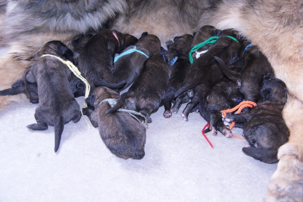 Viola, zoals beloofd onze eerste fotokes. Wat bekomen na de lange bevalling, alle pupjes gezond en wel, als beloning de lekkere mamamilk.